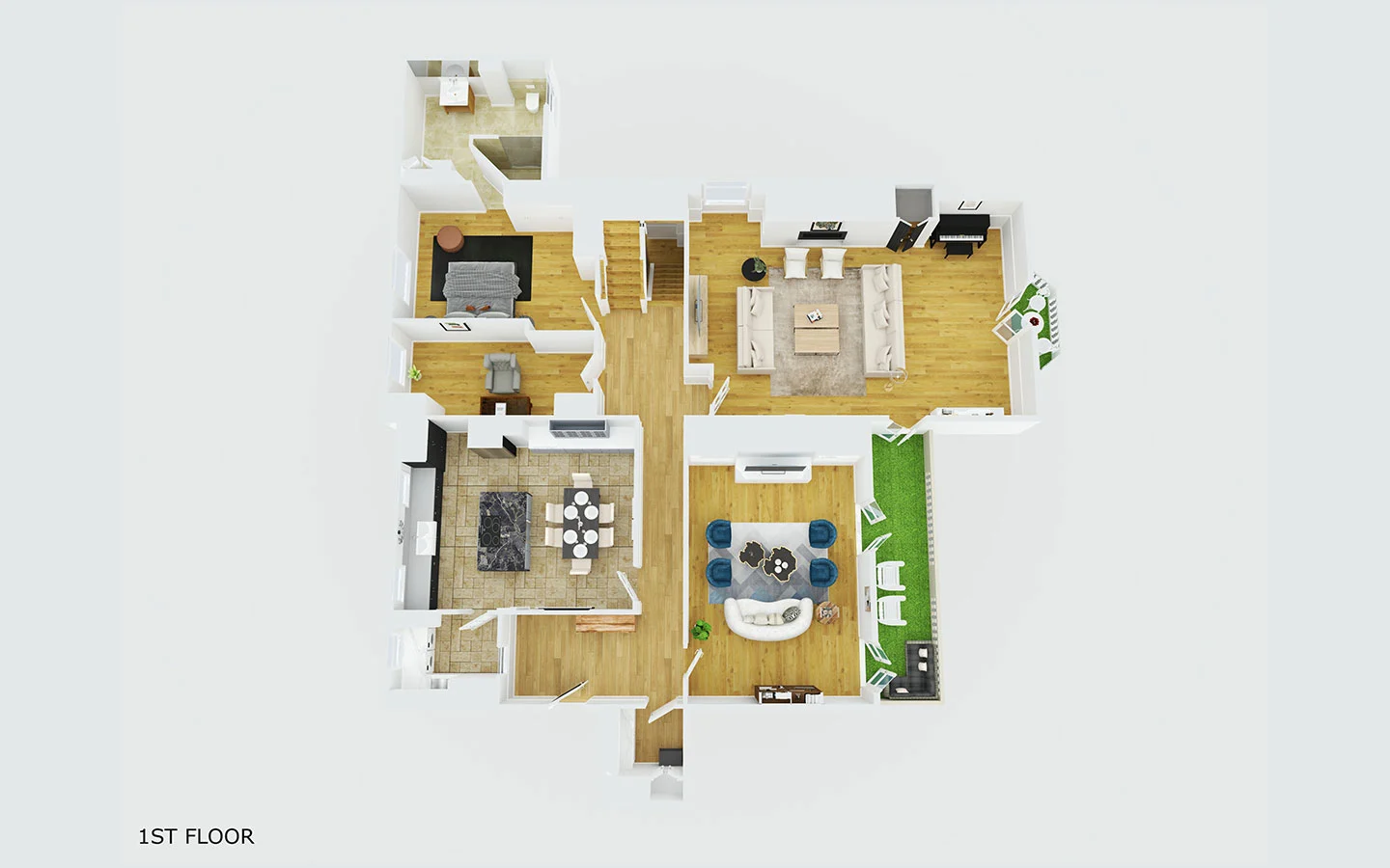 Adjacent is a well-appointed utility room with raised appliances and underfloor heating. American oak flooring runs through the main lounge and hallways, complemented by French oak flooring elsewhere, while the plush carpets — all under two years old — add further warmth and refinement.